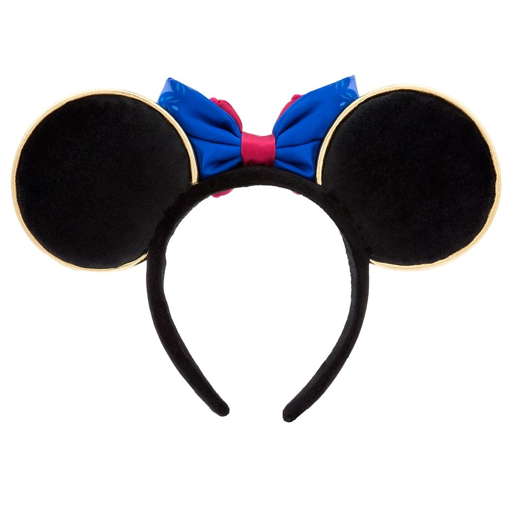 For the first time in forever our mouse ear headband is themed to Frozen‘s Anna. Embroidered filigree and gemstone studs, plus a double-layer bow with pom pom trims add a fanciful flair to this fairytale topper.