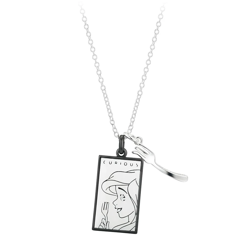 The always ”Curious” Ariel is paired with a dinglehopper on this necklace. Inspired by Disney’s The Little Mermaid, the large pendant includes the Disney Princess within a black rhodium border, while the dimensional dinglehopper pendant makes this piece one every Ariel fan will treasure.