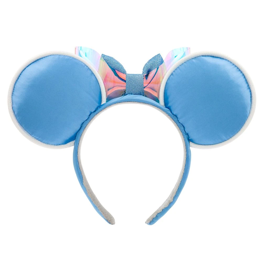 With a ”Bibbidi-Bobbidi-Boo” transform your look from rags to riches in this elegant Cinderella ear headband. Blue satin fabric glimmers with silver foil stardust and a pumpkin coach icon while the clock face charm at the center of a metallic blue bow counts down to midnight. Will the dream come true for you? You bet!