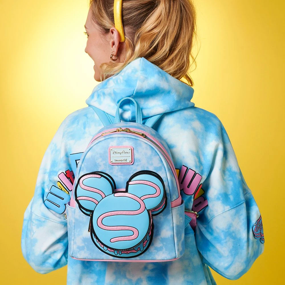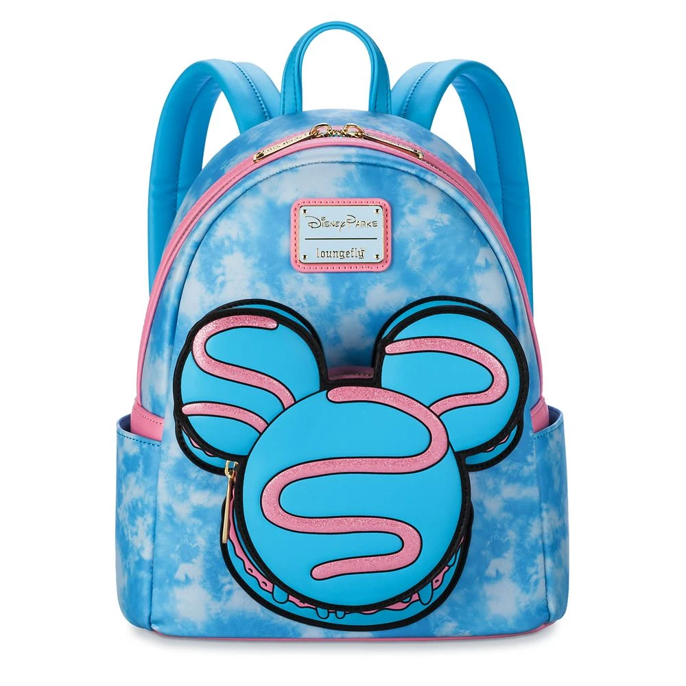 Fans of the delicious Parks macarons will be sweet on this mini backpack inspired by the popular treat. One of the Mickey icon-shaped macarons serves as an exterior pocket on this simulated leather bag from Loungefly. The die-cut front feature is detailed with glittering pink squiggles while the rest of the bag has a tie-dye pattern. Looking good enough to eat, it’ll make you hunger for your next trip to the Parks.