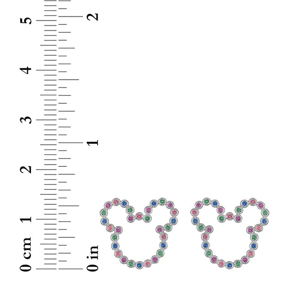 Add dazzling color to any look with these Mickey Mouse icon earrings by Rebecca Hook. Nano gems in green, blue, pink and purple sparkle, and sterling silver shines in these enchanting earrings featuring post backs. They make the perfect gift for somone you love or a special treat for yourself.