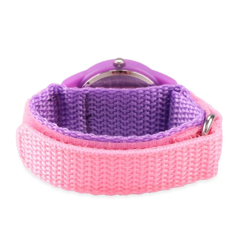 - Pink and purple adjustable nylon strap with self-stick fabric closure