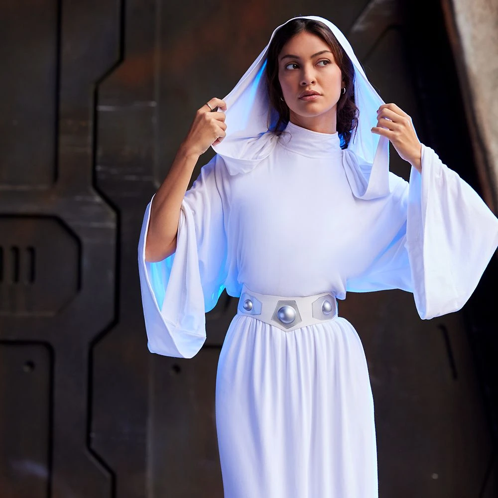 Get into character as you prepare for your next Star Wars adventure. Imagine yourself as Princess Leia in this detailed replica of her iconic dress. With its draped fabric, attached hood, and simulated leather belt you’ll feel like royalty on your epic Star Wars mission.